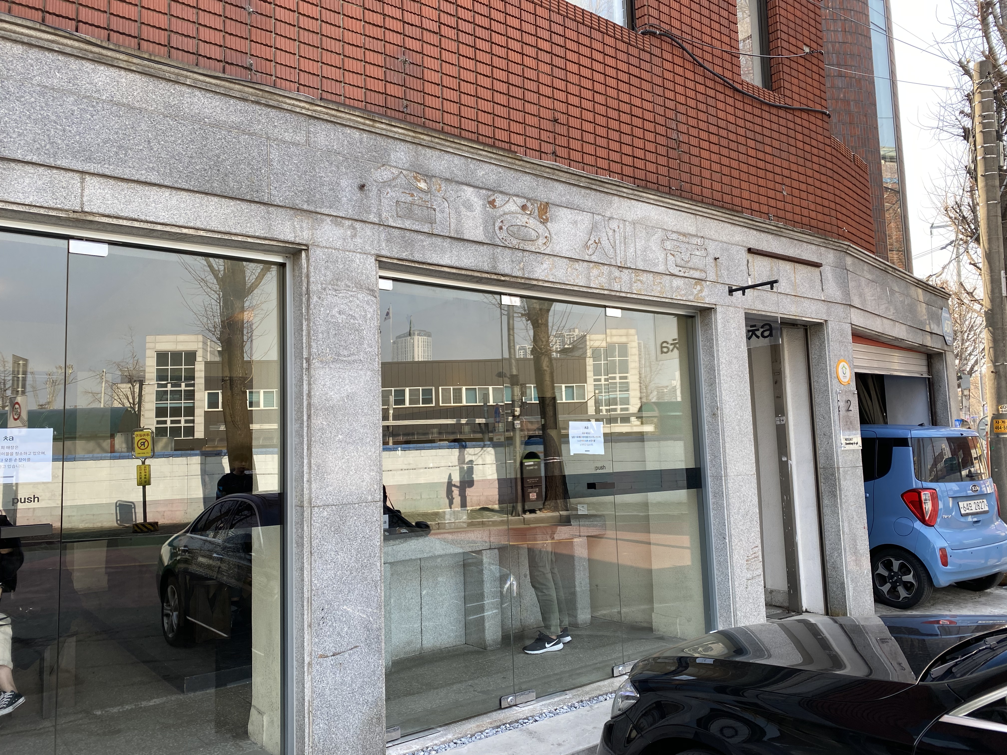 잘 보이지 않은 간판과 함께 있는 곳,