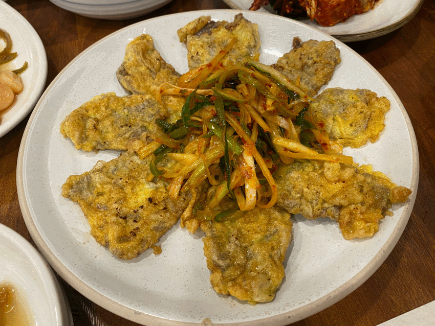 먹다가 술안주가 부족해서 육전을 시켰는데, 파무침에 육전을 싸 먹으니 이거 완전 너무 맛있더라구요. 개인적으로 집에서 고기를 먹을때도 파절이, 파무침을 만들어서 먹는데 이거 정말 맛있습니다.