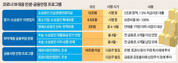 - 비상금융조치에는 중소기업과 소상공인의 대출 원금 만기 연장을 전 금융권으로 확대하고 대출 이자 납부를 유예하는 등 파격적인 내용이 포함됨