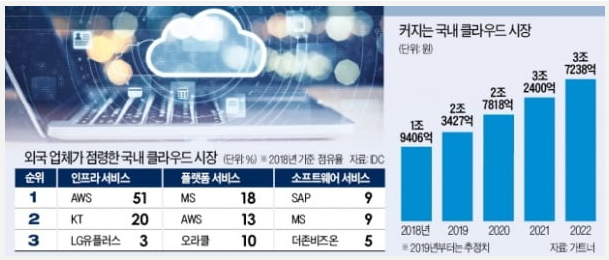 - 성장하고 있는 한국의 클라우드 시장을 본격적으로 공략하기 위해서이며, 최근 신종 코로나바이러스 감염증(코로나19) 확산으로 비대면 IT 업무가 급증해 국내 클라우드 시장의 성장세는 더 가팔라질 것이라는 전망이 나옴